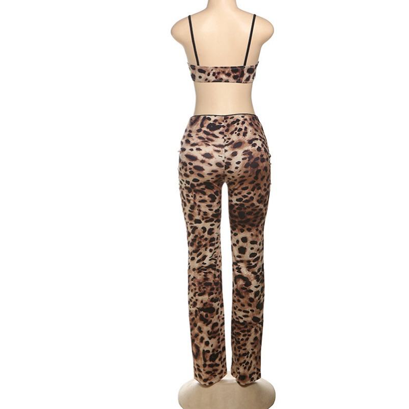 Viviblook ชุด Z0114ST06 2025ใหม่สำหรับผู้หญิงชุดสองชิ้นกางเกงรัดรูปเอวสูงเซ็กซี่พิมพ์ลายเสือดาวเซ็กซี่