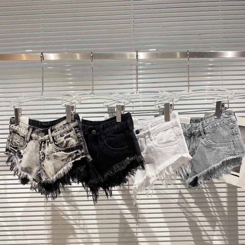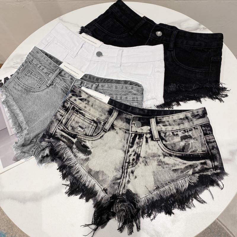 วิวิบลุค Z0123PT กางเกงยีนส์ขาสั้นทรงเรโทรสำหรับผู้หญิง ฤดูร้อน เซ็กซี่ ขาดๆ เซอร์ๆ เอวต่ำ ทรงตรง ขากว้าง กางเกงขาสั้นสุดฮอต