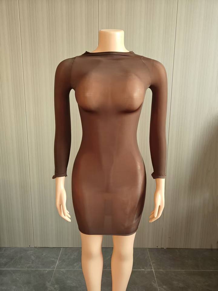 วิวิบลุค Z0124DS01 ชุดเดรสผู้หญิงเซ็กซี่ ผ้ายืดเนื้อเนียนเงา ชุดรัดรูปสำหรับออกงานกลางคืน ชุดซีทรูเซ็กซี่