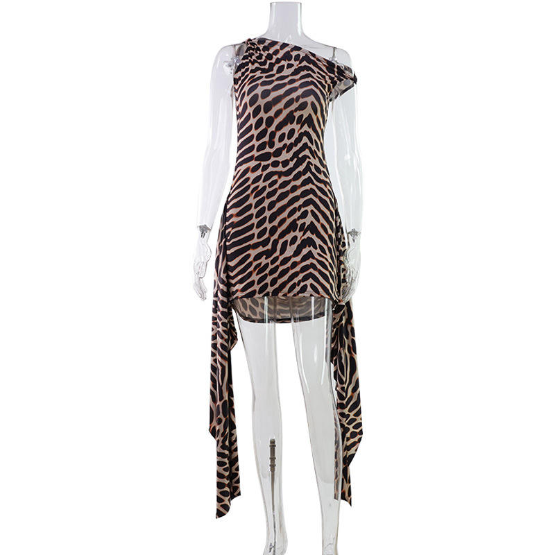วิวิบลูค Z0203DS04 ชุดเดรสฤดูร้อนผู้หญิงใหม่ เซ็กซี่ แขนกุด พิมพ์ลาย ริบบิ้นแบบไม่สมมาตร ชุดปาร์ตี้ ชุดเดรสเข้ารูปเซ็กซี่สำหรับออกงานกลางคืน