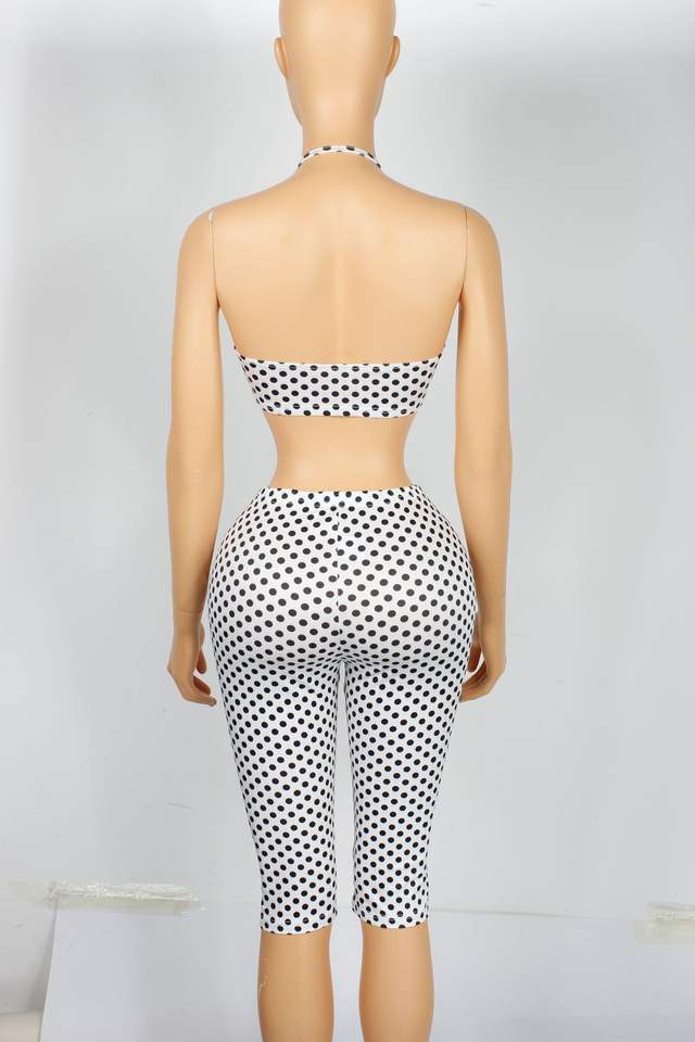 ชุดเซ็ตผู้หญิง Viviblook Z1208ST01 ใหม่ล่าสุด ลายจุด สไตล์ลำลอง เซ็กซี่ เสื้อครอปแบบผูกคอ กางเกงครอป สำหรับผู้หญิง