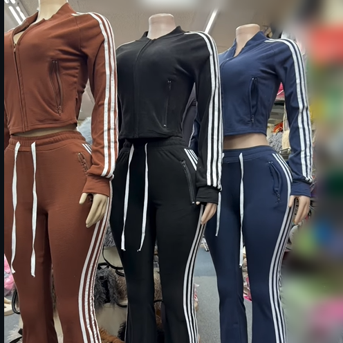 วิวิบลุค Z1209ST10 ชุดวอร์มผู้หญิง เสื้อแจ็คเก็ตคาร์ดิแกนผ้ากำมะหยี่มีซิป กางเกงขาบานลายทางด้านข้าง มีเชือกผูกเอว ชุดสองชิ้นไซส์ใหญ่