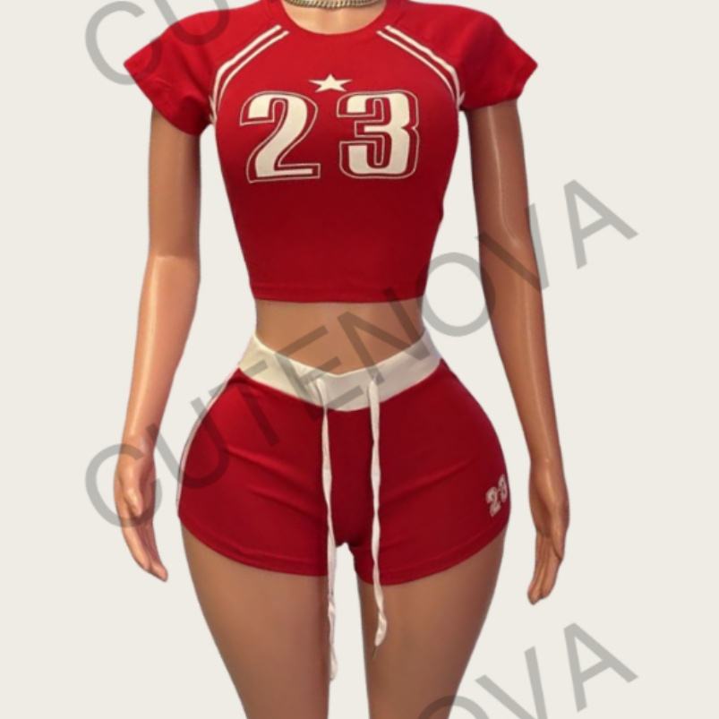Viviblook ชุดกีฬาผู้หญิงแขนสั้นกางเกงขาสั้นเสื้อครอปท็อปชุดวอร์มสองชิ้น Z621ST03ฤดูร้อน