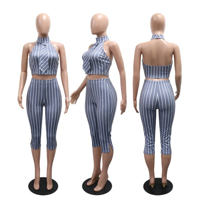 เสื้อกั๊กคอปกแขนกุดลายทางสำหรับผู้หญิง, Z623ST07 viviblook กางเกงครอปสองชิ้นขนาดใหญ่พิเศษ