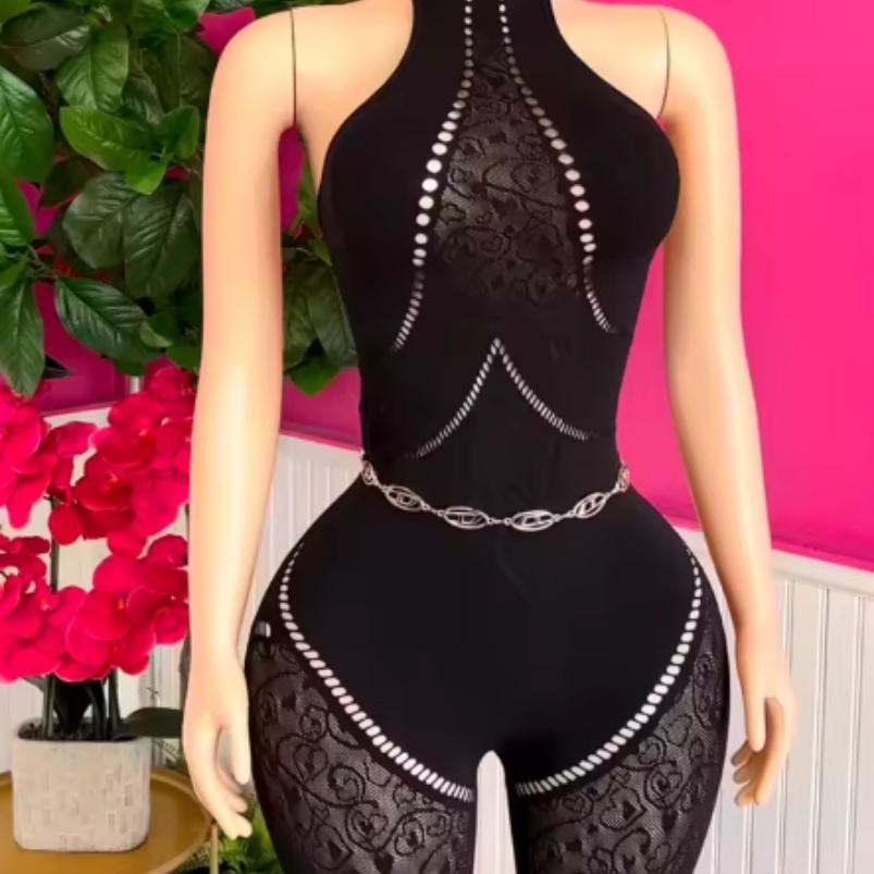 Viviblook ชุด Z927JP04คลับเซ็กซี่บอดี้สูทลูกไม้โปร่งชุดจั๊มสูทรัดรูปเซ็กซี่สีดำกลวงออกเซ็กซี่สำหรับผู้หญิง