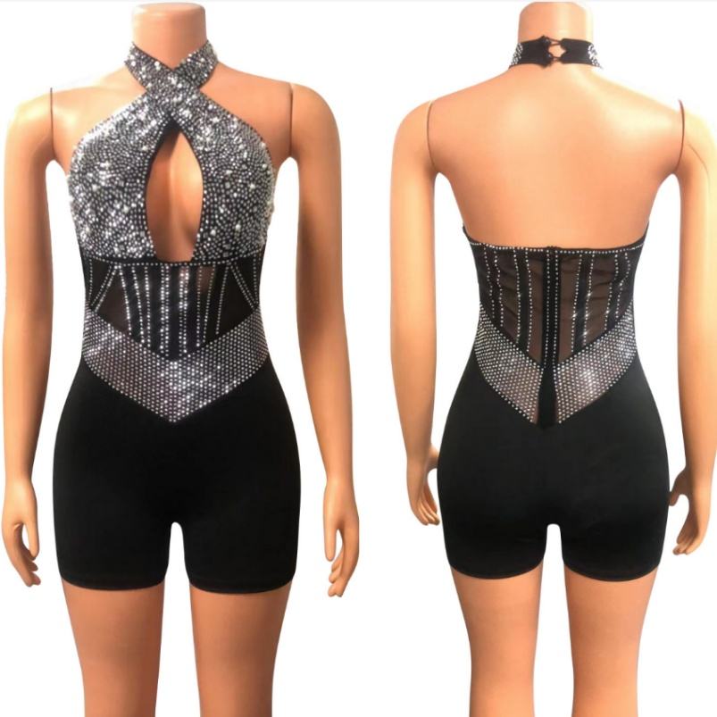 Viviblook ชุดรอมเปอร์แอคทีฟสำหรับผู้หญิงชุดรอมเปอร์เซ็กซี่แบบใหม่รัดรูปมีเชือกแขวนคอประดับพลอยเทียมสำหรับ Z927RP ตอนเย็นชุดรอมเปอร์บอดี้คอนสำหรับสุภาพสตรีบอดี้คอน