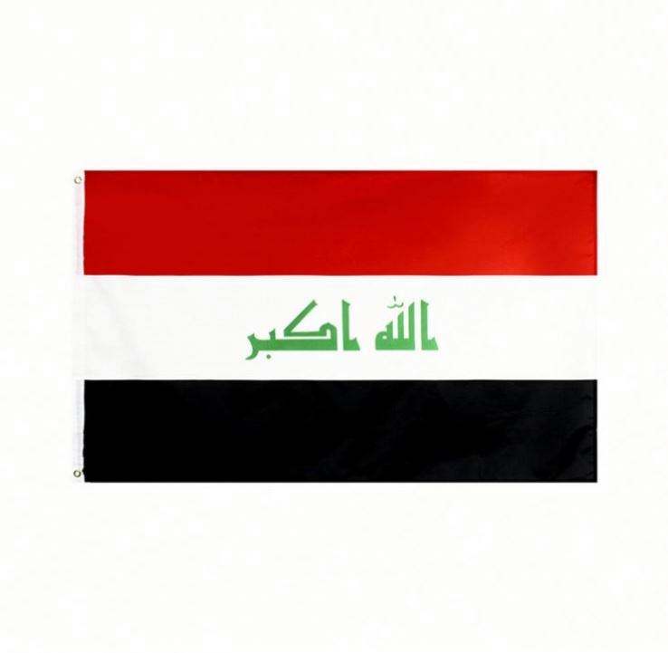 ธงสั่งทำสีสันสดใส วัสดุโพลีเอสเตอร์ ธงชาติอิรัก ธงแขวนพกพา พิมพ์ดิจิทัล