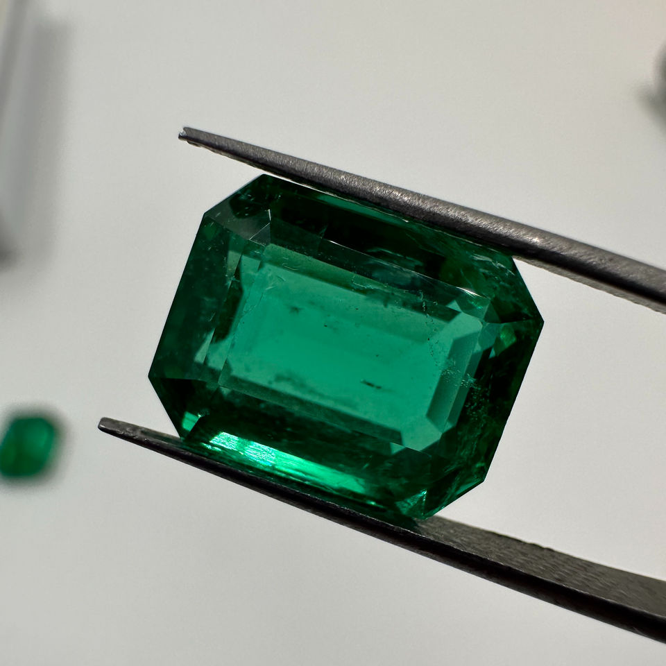 สีเขียวสดใสเกรดพรีเมี่ยมคุณภาพที่เหนือกว่าไม่ผ่านการบำบัด AAA 7.33กะรัตมรกตแซมเบียธรรมชาติสำหรับเครื่องประดับระดับไฮเอนด์