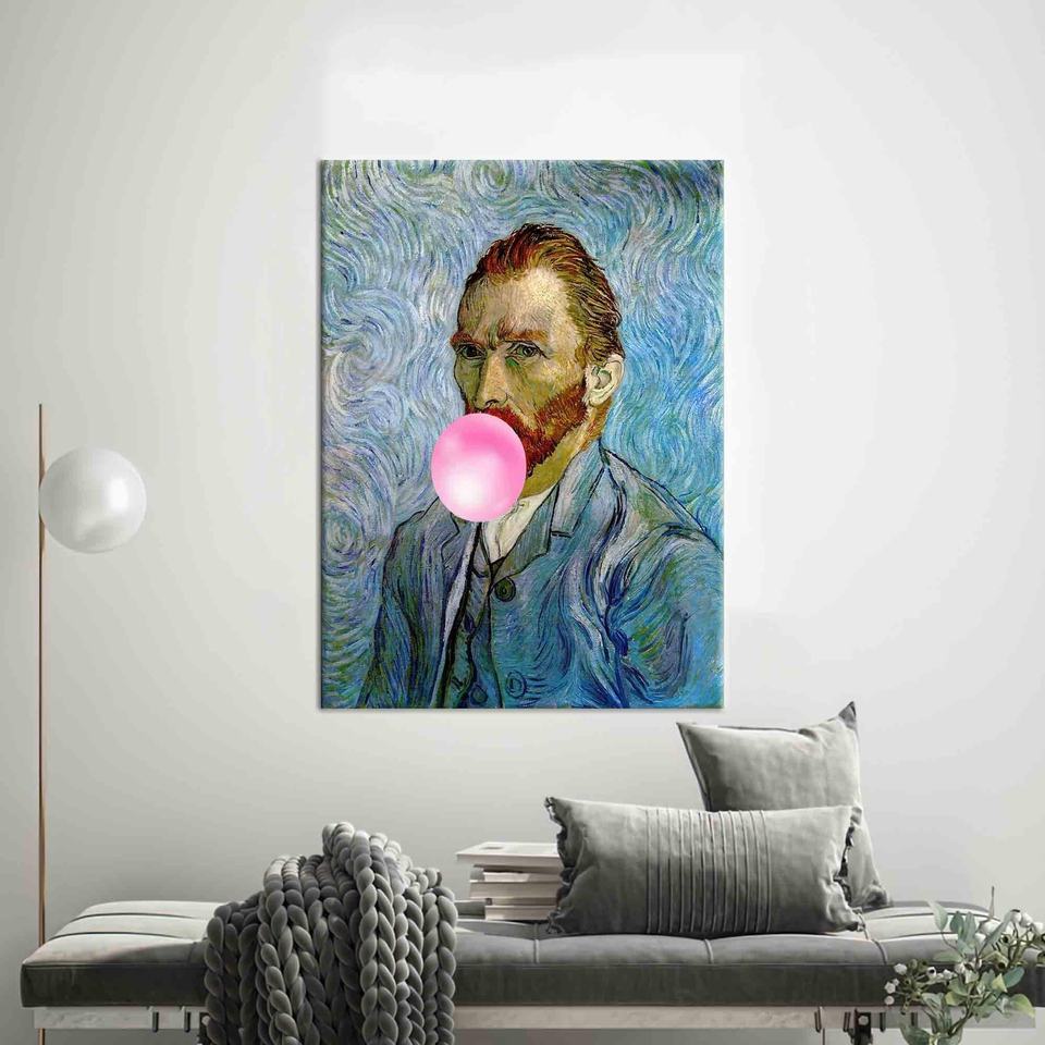 ภาพพิมพ์บนผ้าใบลายภาพเหมือนตัวเองของแวนโก๊ะ สีสันสดใส สำหรับตกแต่งผนัง งานศิลปะแบบแบน ห่อหุ้มอย่างดี