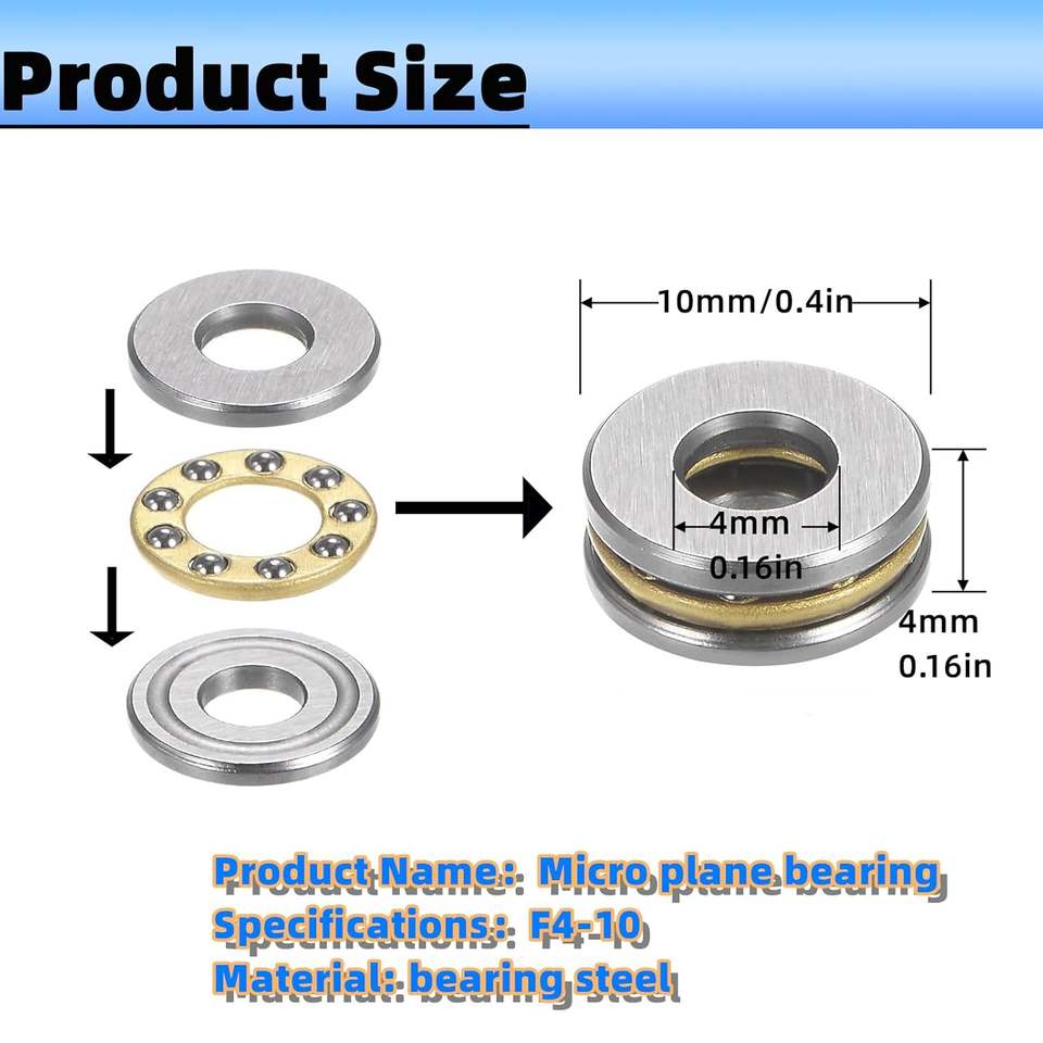 ลูกปืนแรงขับขนาดเล็ก Vleant 6 ชิ้น รุ่น F4-10M ความแม่นยำสูง แบบแถวเดียว ขนาด 4x10x4 มม. โครงเหล็กและทองเหลือง รุ่นประกอบเอง VL-D00189