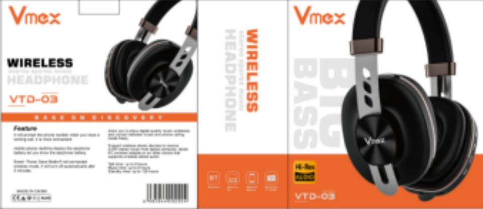 วีเม็กซ์หูฟังไร้สายแบบครอบหูบลูทูธประเภทซีชาร์จไดนามิกไดร์เวอร์เสียงเบสสูงวีทีดี 03