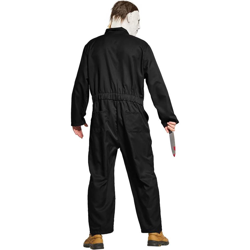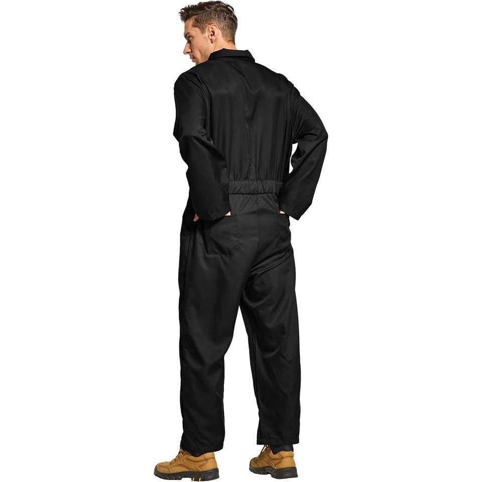 ชุดเอี๊ยมผ้าทวิลสำหรับผู้ชาย ทรงหลวม แขนยาว สวมใส่สบาย สีดำ ผ้าฝ้าย