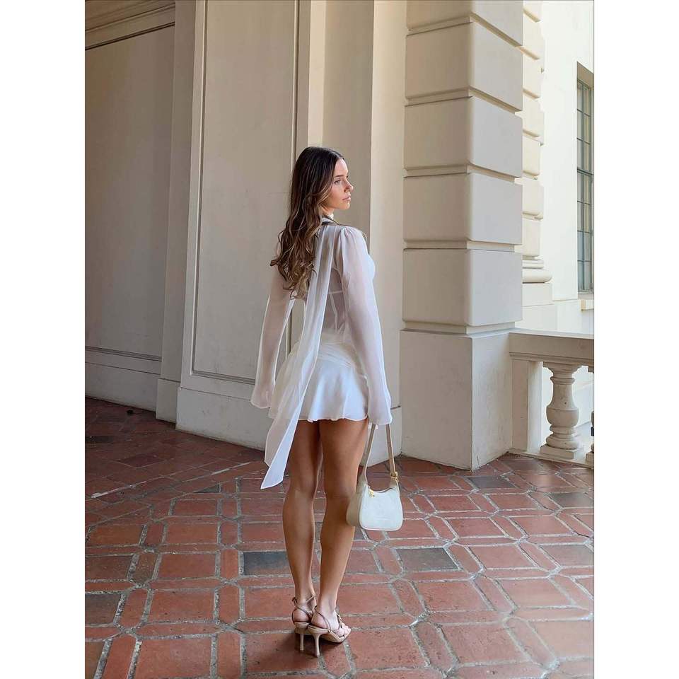 ชุดเสื้อตาข่ายซีทรูและกระโปรงสั้นสำหรับผู้หญิงของ Voikerdr ชุดเดรสผ้าชีฟองแขนยาวระบายอากาศได้ดี เหมาะสำหรับการเดินทาง