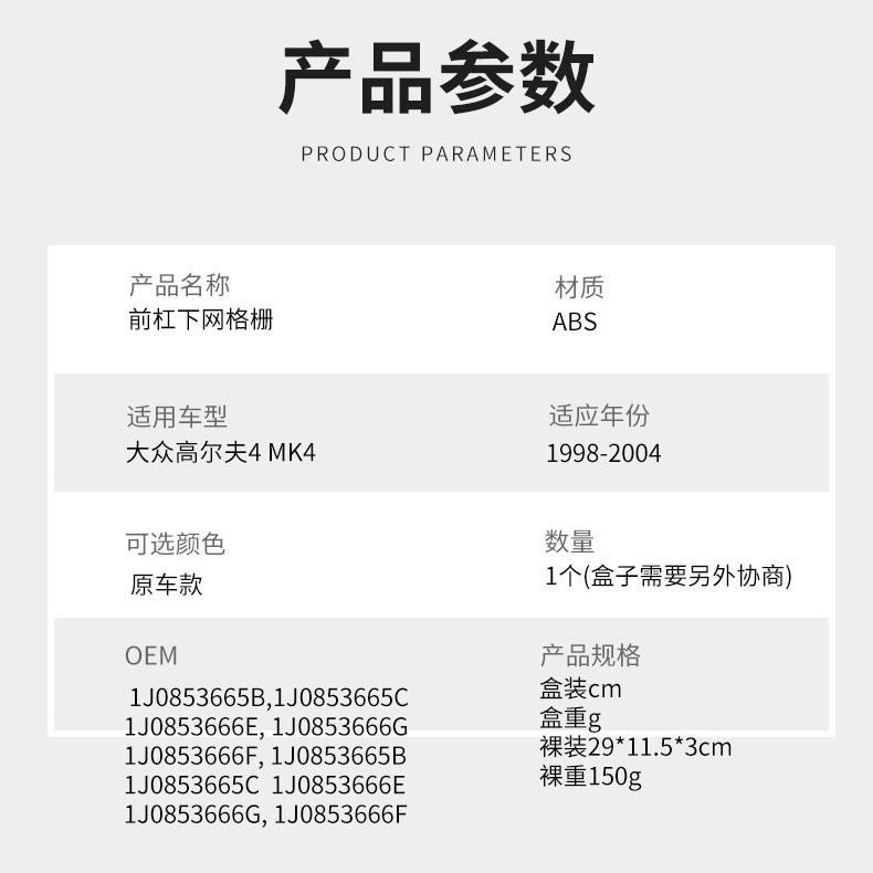 กรอบไฟตัดหมอกกันชนหน้า Volkswagen Golf 4 Mk4 ตะแกรงล่าง ปี 1998-2004 วัสดุ ABS ติดตั้งแบบคลิป