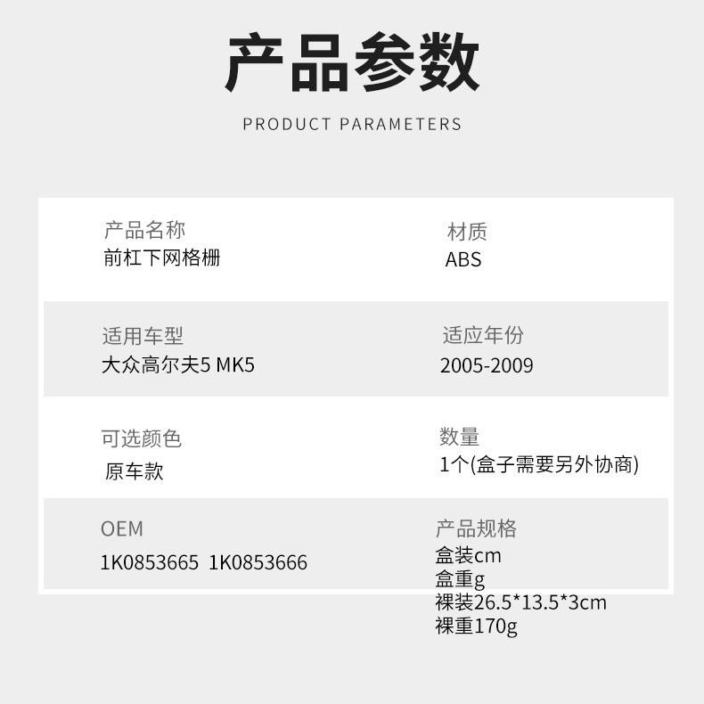 Volkswagen Golf 5 Mk5 Front Bumper Lower Grille Abs 2005-2009 OEM 1K0853665 1K0853666