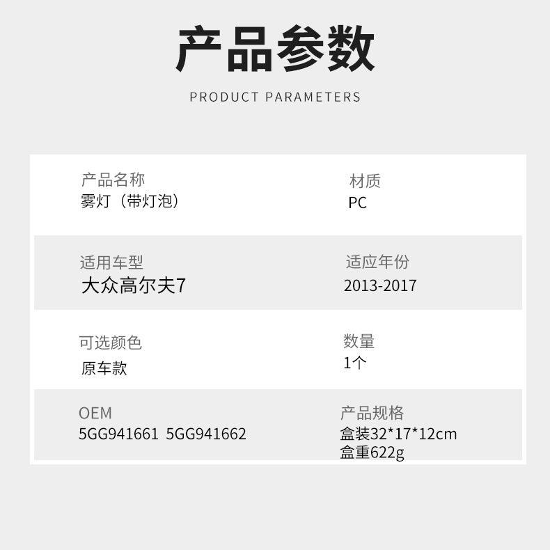 Applicable to Volkswagen Golf 7, 2013-2017Applicable models