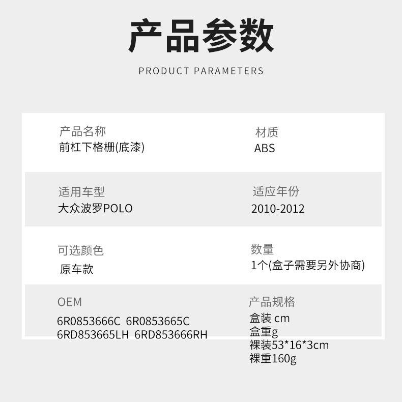 กระจังหน้ากันชนหน้ารถยนต์ Volkswagen Polo สำหรับไฟตัดหมอก ช่องระบายอากาศด้านล่างและกลาง ปี 10-12 ผลิตจากพลาสติก ABS อะไหล่ทดแทน รุ่น D035 D036