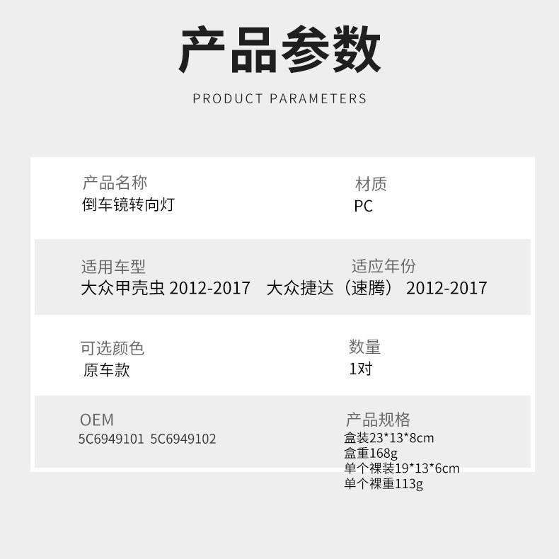 ชุดไฟเลี้ยวโฟล์คสวาเก้นสำหรับเจตต้า เอ็มเค 7 บีเทิล พาสพาส ซีซีซ้ายขวา ABS อะไหล่ทดแทนใหม่ L036