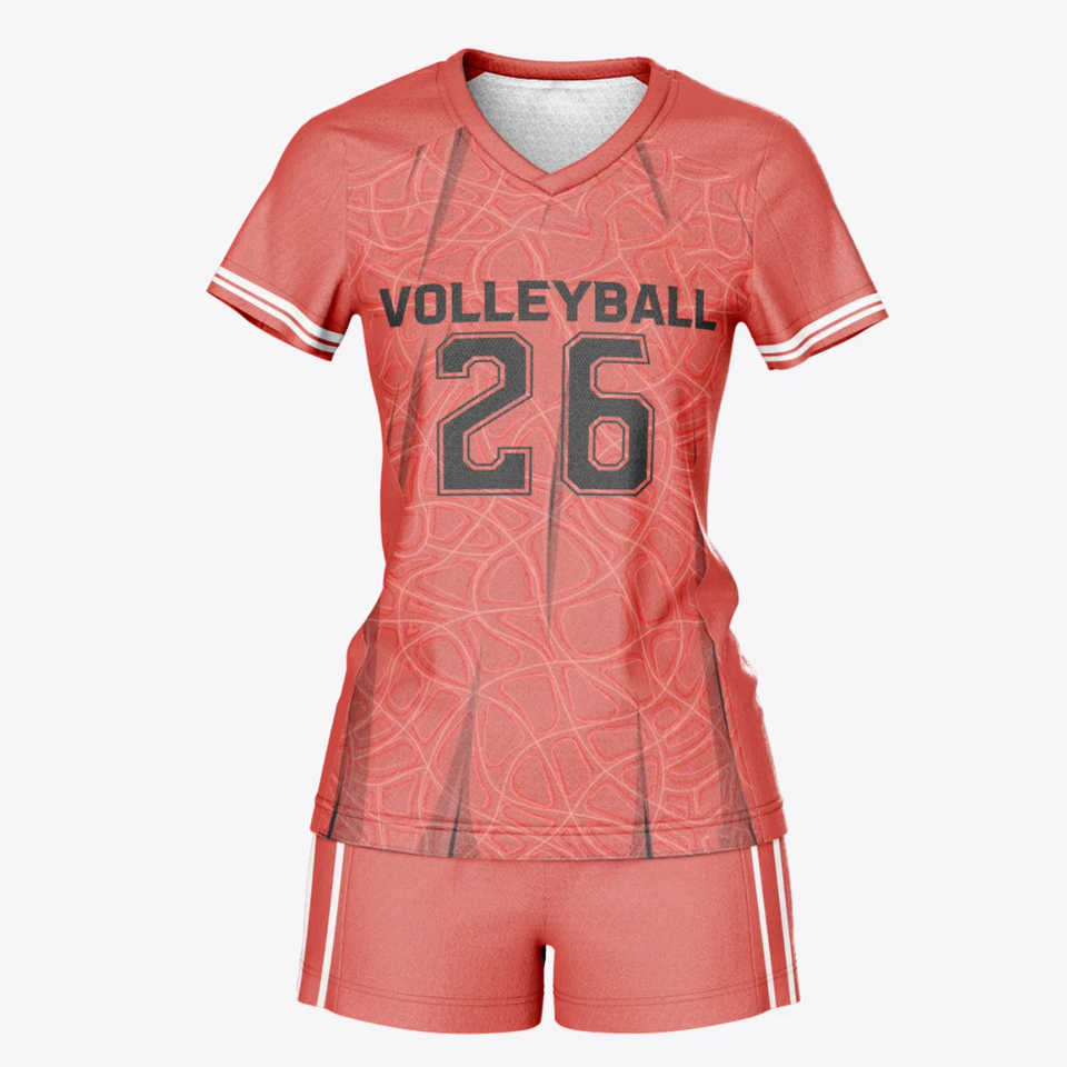 ชุดวอลเลย์บอลสำหรับผู้หญิง ประกอบด้วยเสื้อเจอร์ซีย์ที่มีช่องตาข่ายและกางเกงกีฬาแบบยืดได้