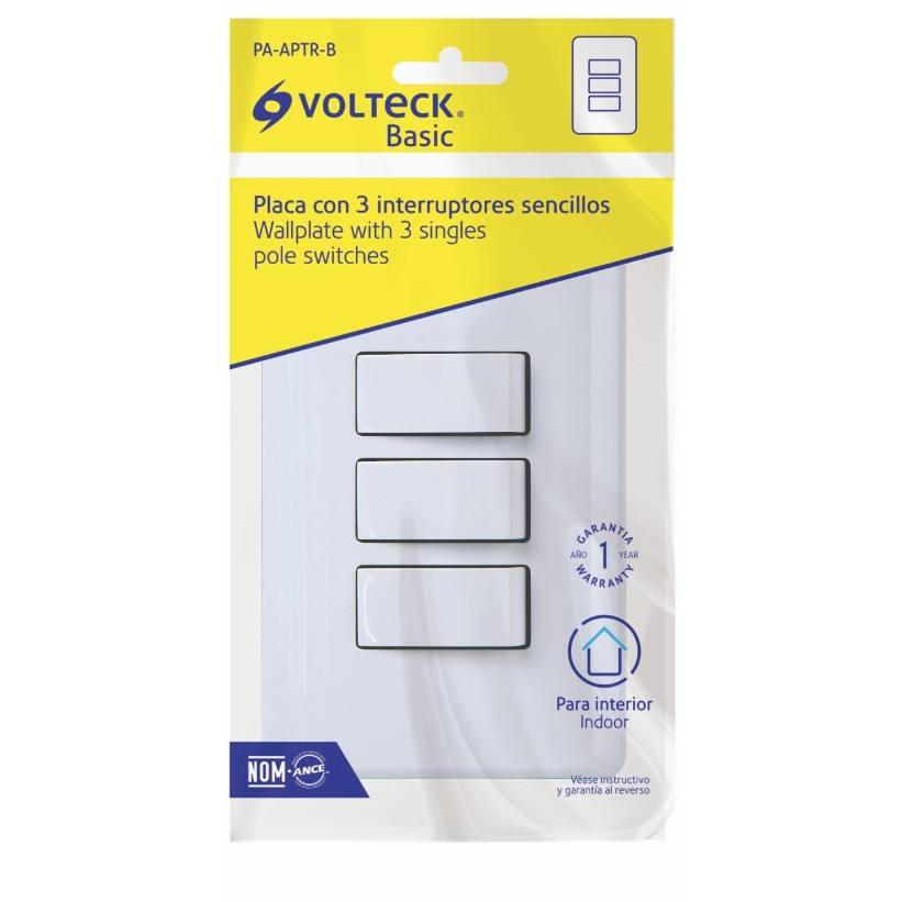 Volteck Basic PA-APTR-B Wall Switch Plate with 3 Simple Switches Assembled