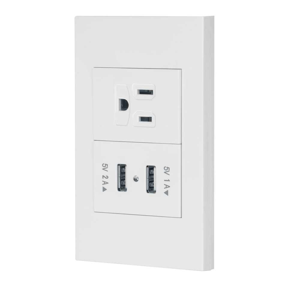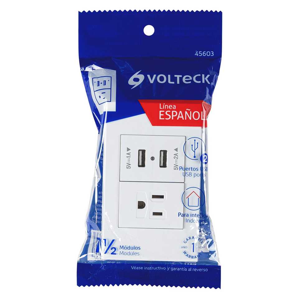 Volteck COUSB-EB Spanish White Wall-mounted Charging Station 1 Contact 2 USB Ports 1.5 Mod Power Board