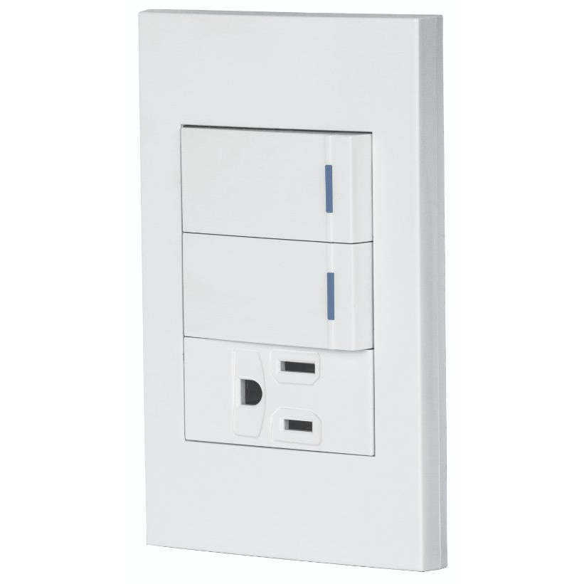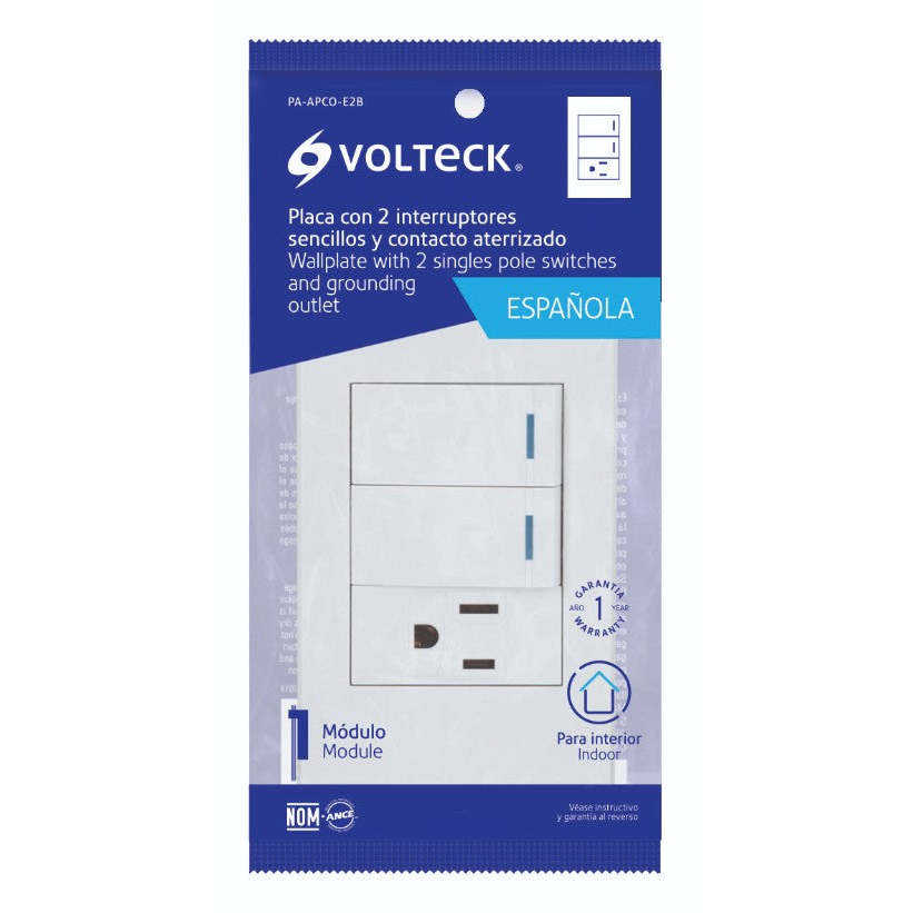 Volteck PA-APCO-E2B Spanish Wall Switches 2-Switch 1-Contact 1-Mod White Plate