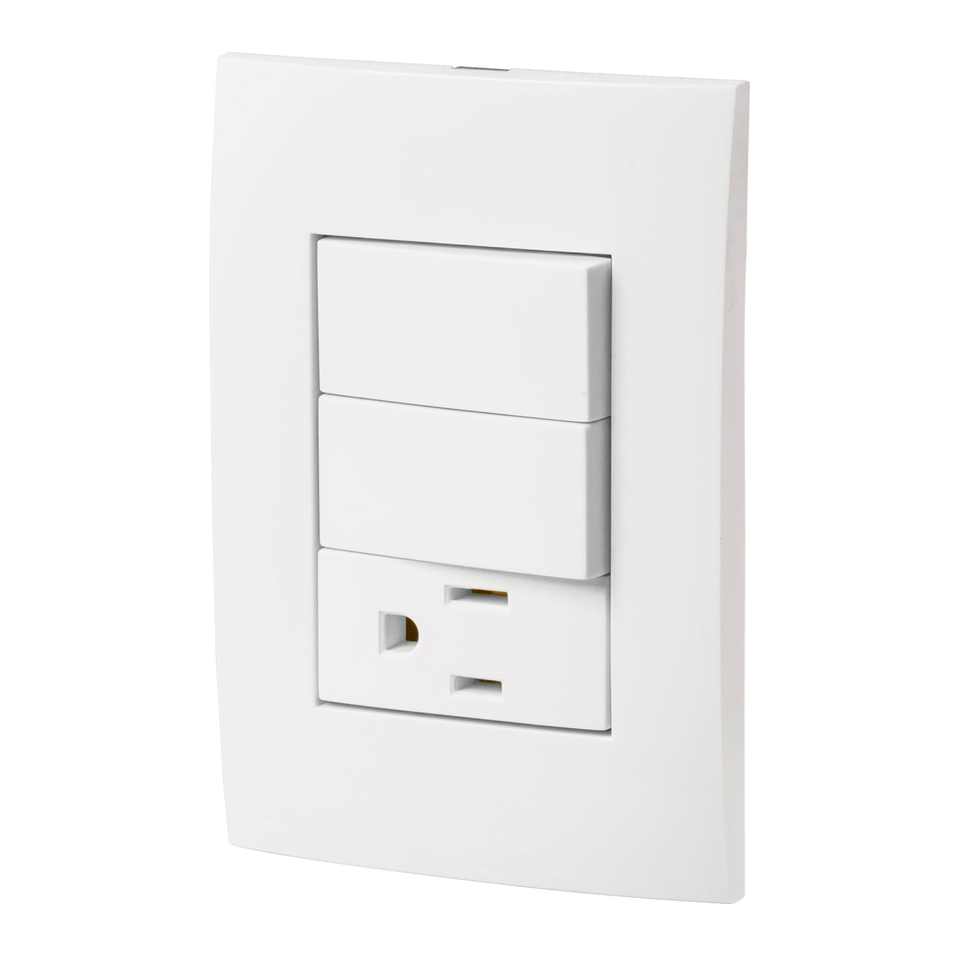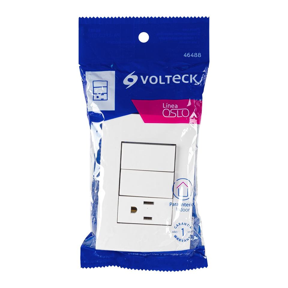 Volteck PA-APCO-O2B Wall Switches Oslo Line White Armed Plate with Contacts and 2 Switches