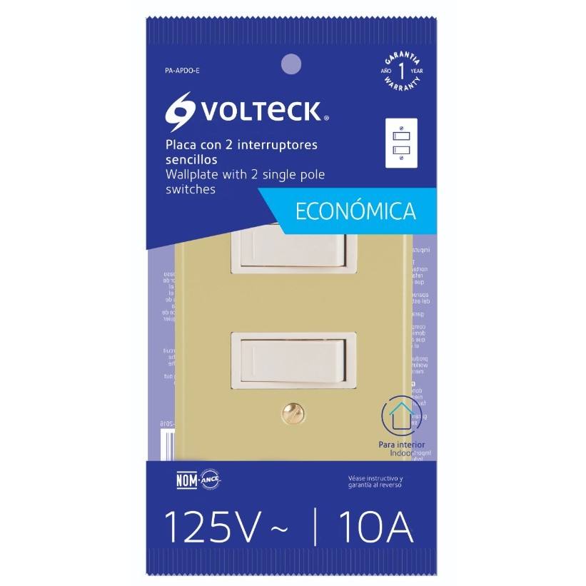Volteck PA-APDO-E Single-Gang Wall Switch 220V/250V Elegant PC Material 2-Switch Plate for Home Use Economic Line