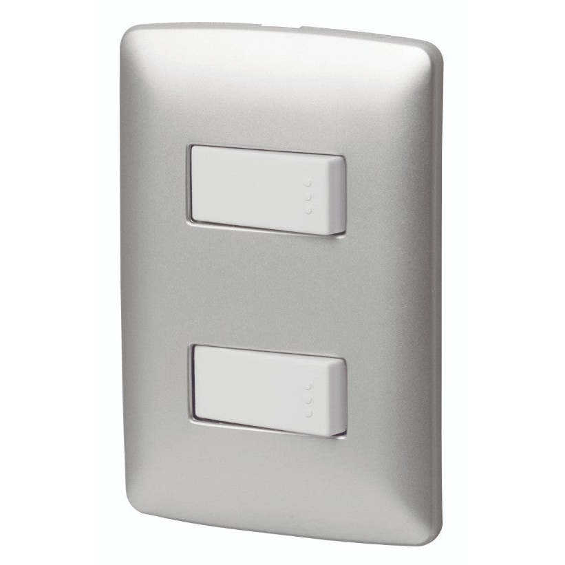Volteck PA-APDO-IP Wall Switch Plate with 2 Single Silver Switches Italian Line Assembled