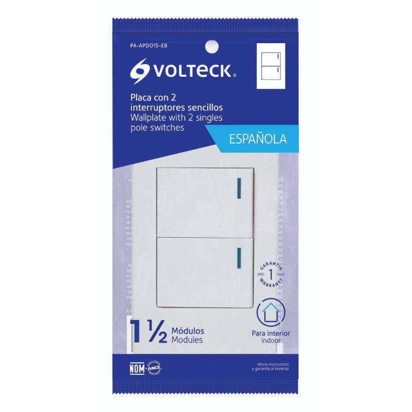 Volteck PA-APDO15-EB Spanish White Smart Life Panel Mounted Light Switches 2 Switches 1.5 Modules 45A Max Current 220V Max