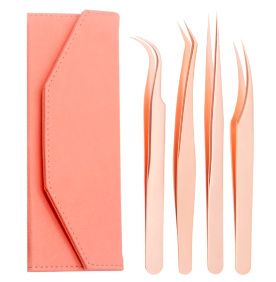 กล่องแหนบต่อขนตาปลอมสีทองพร้อมกล่องแหนบเพิ่มความหนา