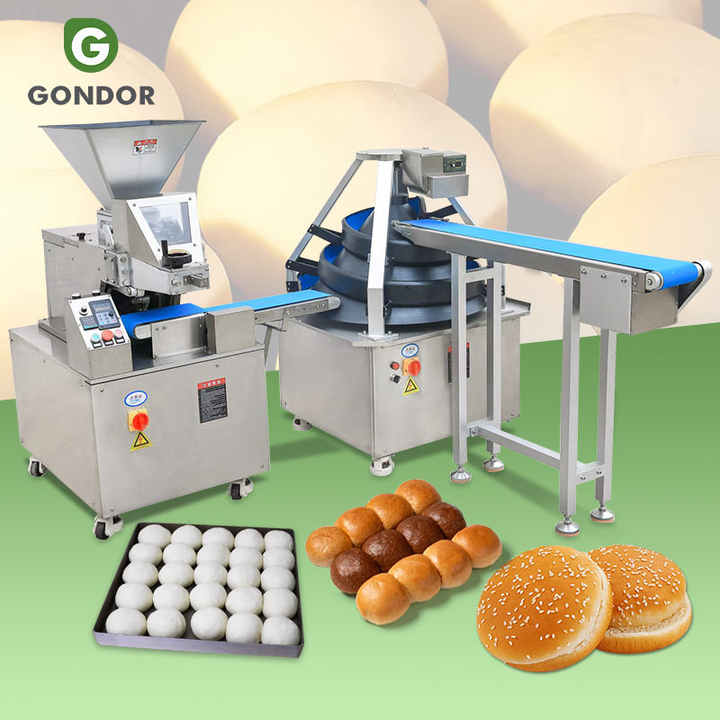 เครื่องแบ่งแป้งแบบต่อเนื่องขนาดเล็กสำหรับอุตสาหกรรม พร้อมเครื่องปั้นแป้งกลมทรงกรวย สำหรับทำขนมปัง