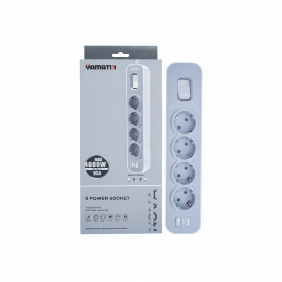 ปลั๊กไฟตั้งโต๊ะ Vomani 3 ช่อง 230V วัสดุ ABS ปลั๊กนิรภัยมาตรฐานยุโรป พร้อมสายต่อพ่วง IP20