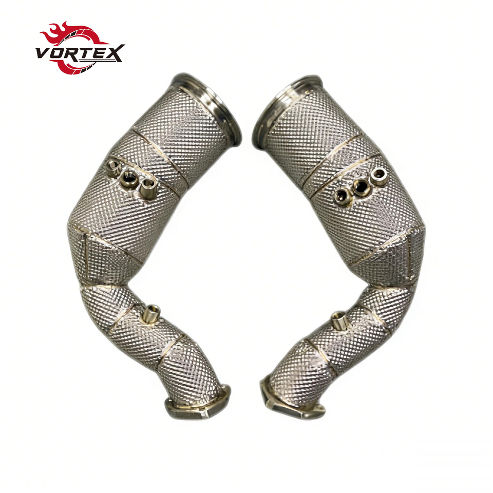 ท่อแคทดาวน์ไพพ์ Vortex 304 สำหรับ Porsche Cayenne Turbo GTS E3 4.0T V8 ปี 2018–2025 พร้อมแผ่นกันความร้อน ไม่แสดงไฟเตือน Check Engine