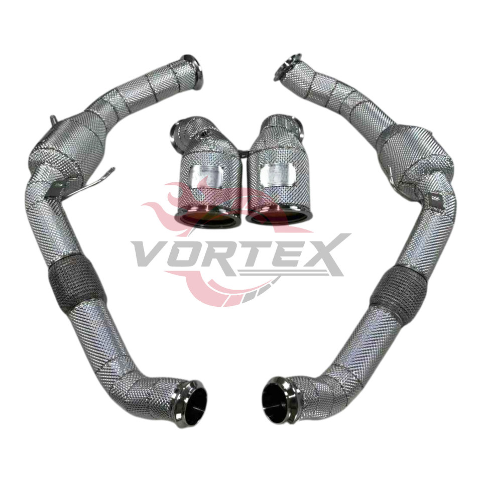ท่อลงแคท Vortex 304 High Flow สำหรับ Porsche Panamera GTS 2.9T V6 ปี 2017-2023 พร้อมแผ่นกันความร้อน ไม่แสดงไฟเตือน Check Engine