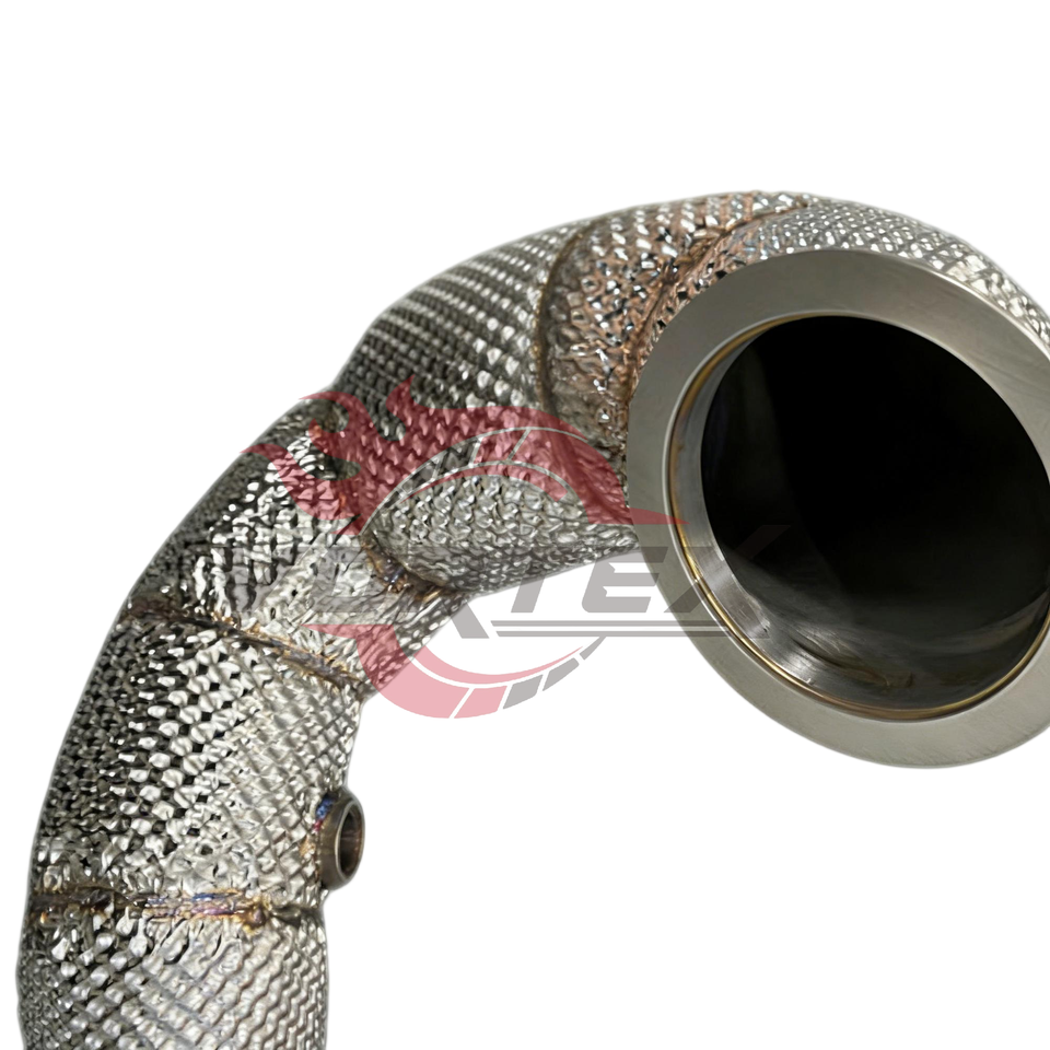 ท่อลงแคทสแตนเลส Vortex 304 แบบไหลสูง สำหรับ VW Golf R MK7 MK7.5 EA888 2.0T ปี 2015–2020 พร้อมแผ่นกันความร้อน ไม่มีไฟเตือน CEL
