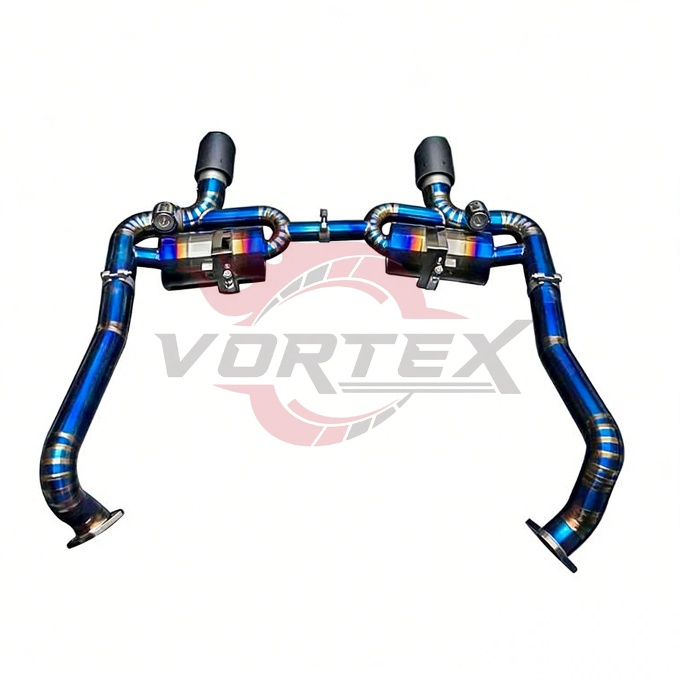 Vortex สีน้ำเงินเผาไทเทเนียม valvetronic ประสิทธิภาพไอเสียสำหรับ Porsche 718 Boxster Cayman PIE-Cut Racing muffler System Tips