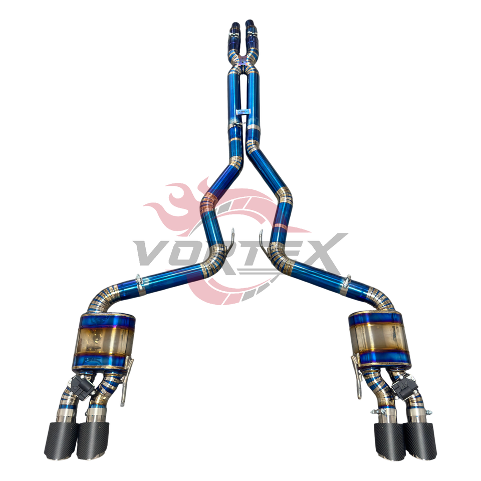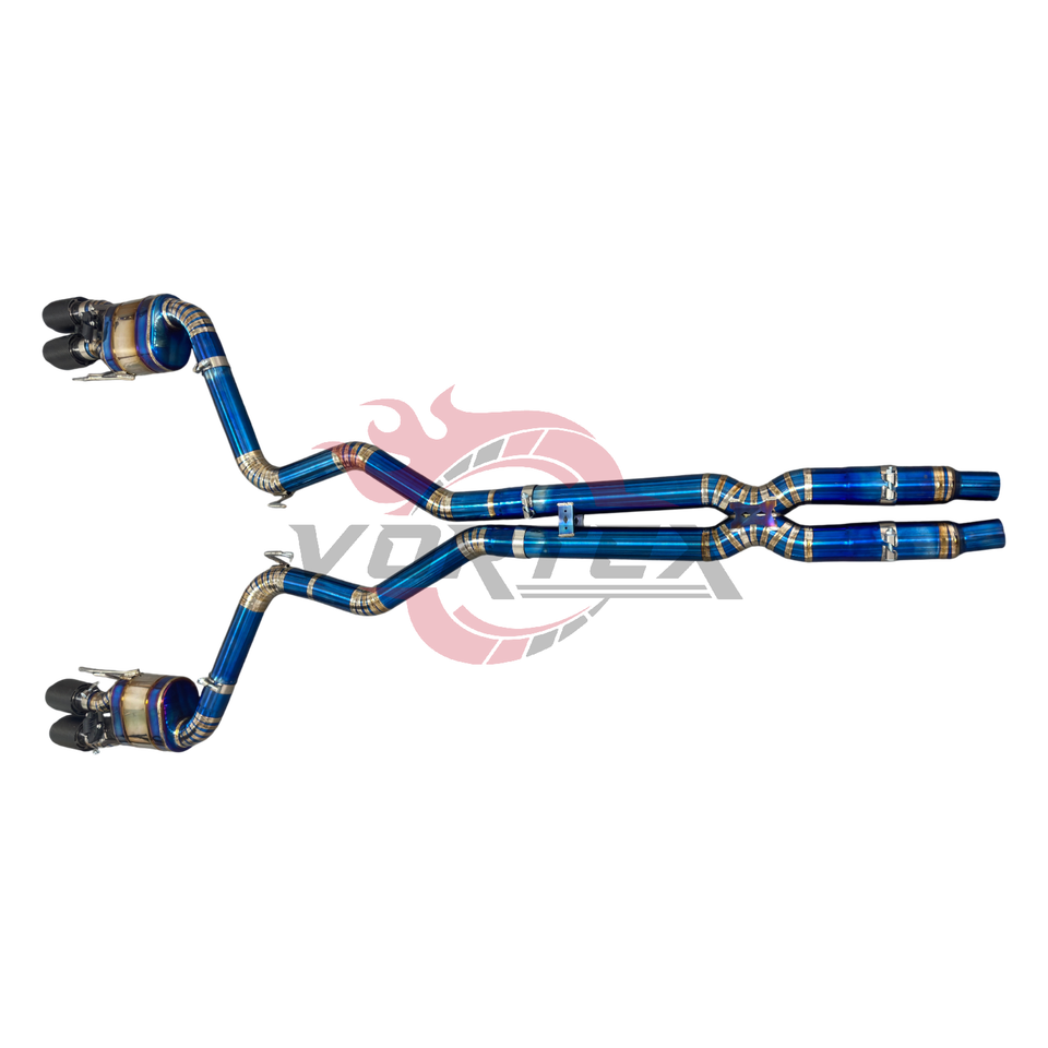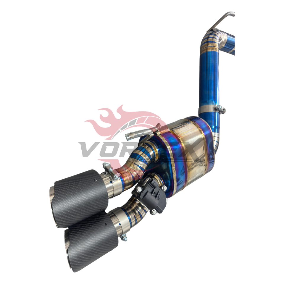 ระบบไอเสียวาล์วทรอนิกส์ไทเทเนียมเกรด 5 ของ Vortex Factory แบบ OEM ODM สำหรับรถมัสแตง 5.0 GT V8 ปี 2015-2017 พร้อมระบบเสียงแอคทีฟ ติดตั้งได้โดยตรง สีฟ้า
