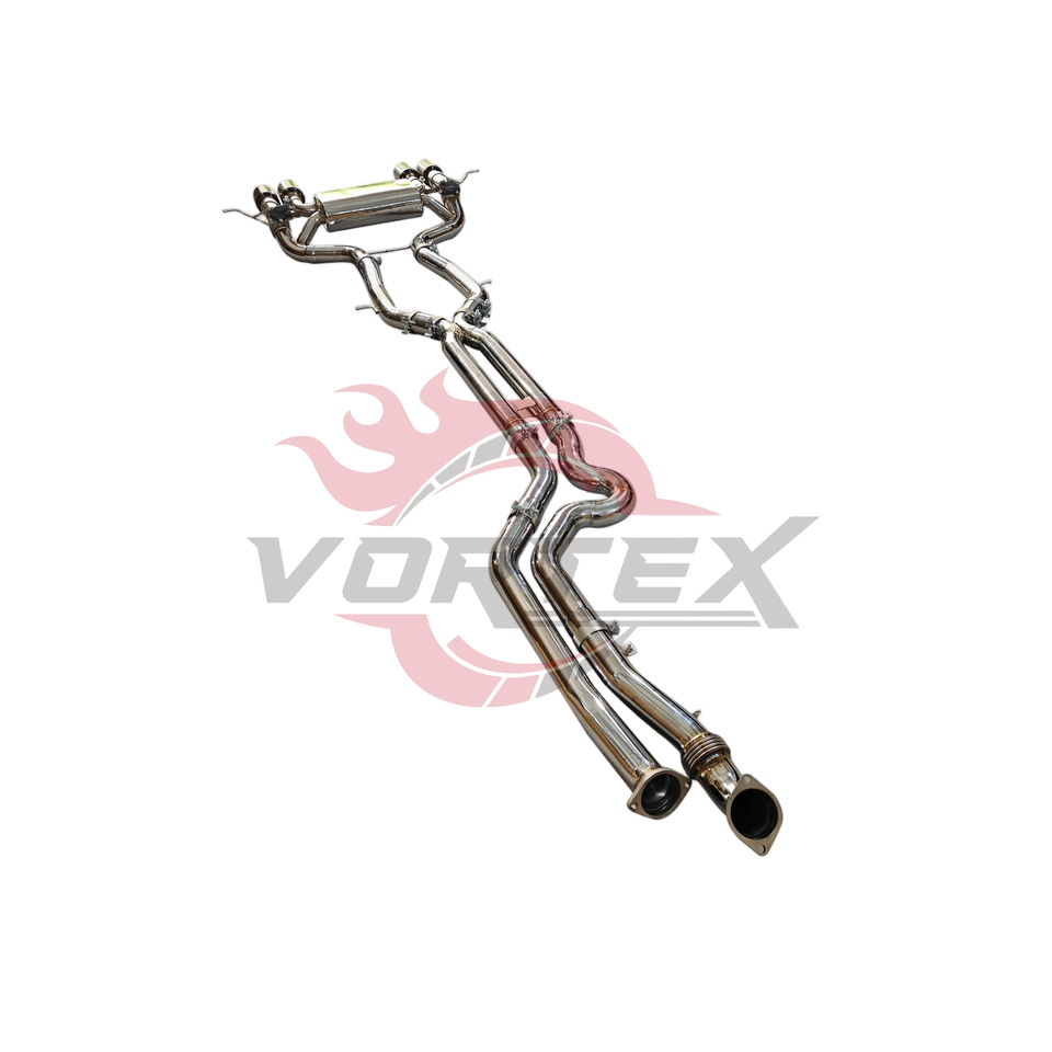 ท่อไอเสียแบบ Catback สำหรับ M3 G80 M4 G82 M2 G87 S58 3.0T ปี 2021-2026 รุ่น Vortex ประสิทธิภาพสูง ผลิตจากสแตนเลส SS304 ขนาด 76 มม. ขัดเงาแบบ Mirror พร้อมวาล์ว ติดตั้งง่ายแบบ Bolt-on 2 จุด