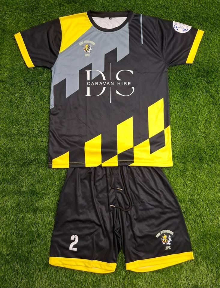 ชุดฟุตบอลสไตล์นักเล่นเกม Vortex สีดำ | ชายหญิงขนาดเยาวชน | ชุดกีฬาแห้งเร็วน้ำหนักเบาขายส่ง