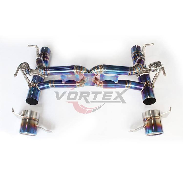 ท่อไอเสียแบบ Catback ยี่ห้อ Vortex เกรด 5 ไทเทเนียม วาล์วทรอนิกส์ สีฟ้าเบิร์นท์ หนา 1.2 มม. สำหรับรถเฟอร์รารี่ 488 GTB Spider Pista ปี 2015-2023