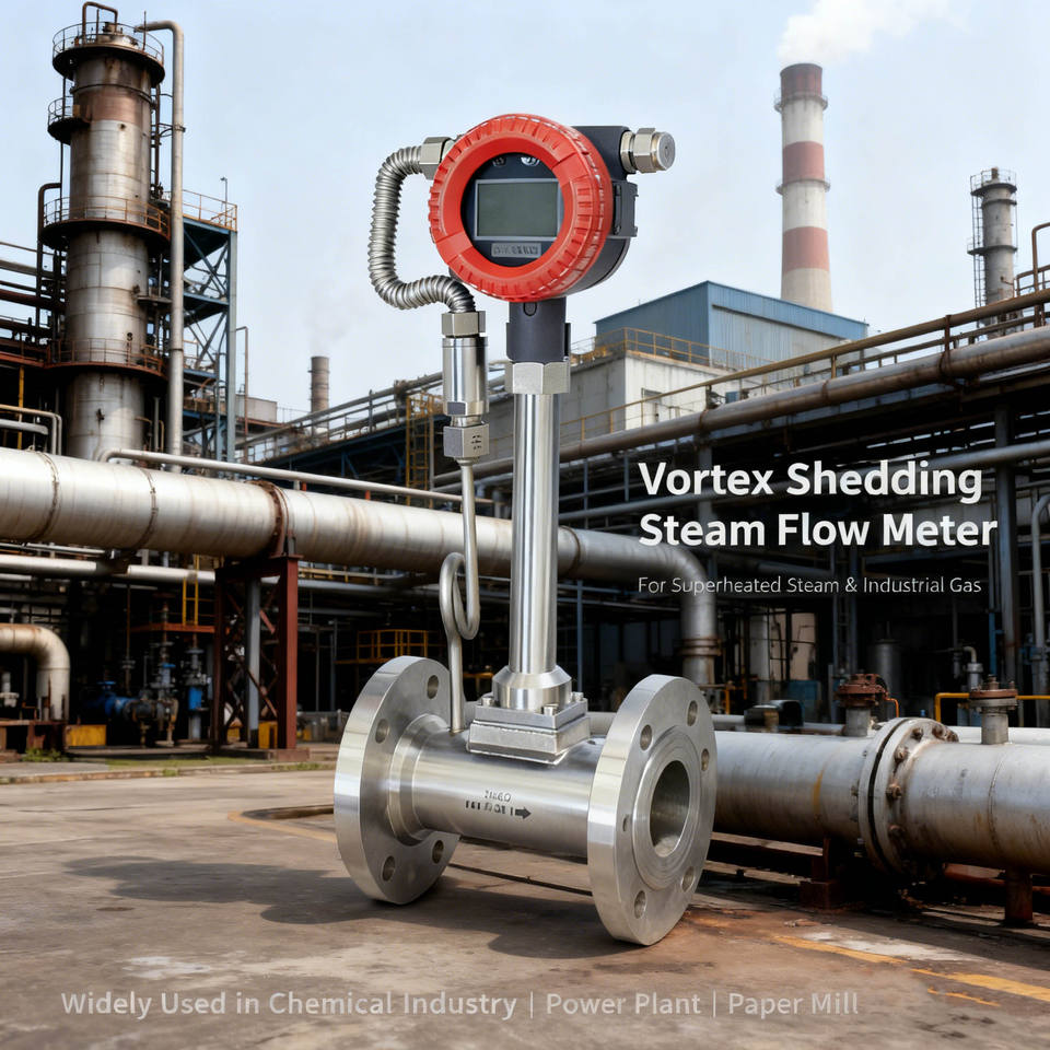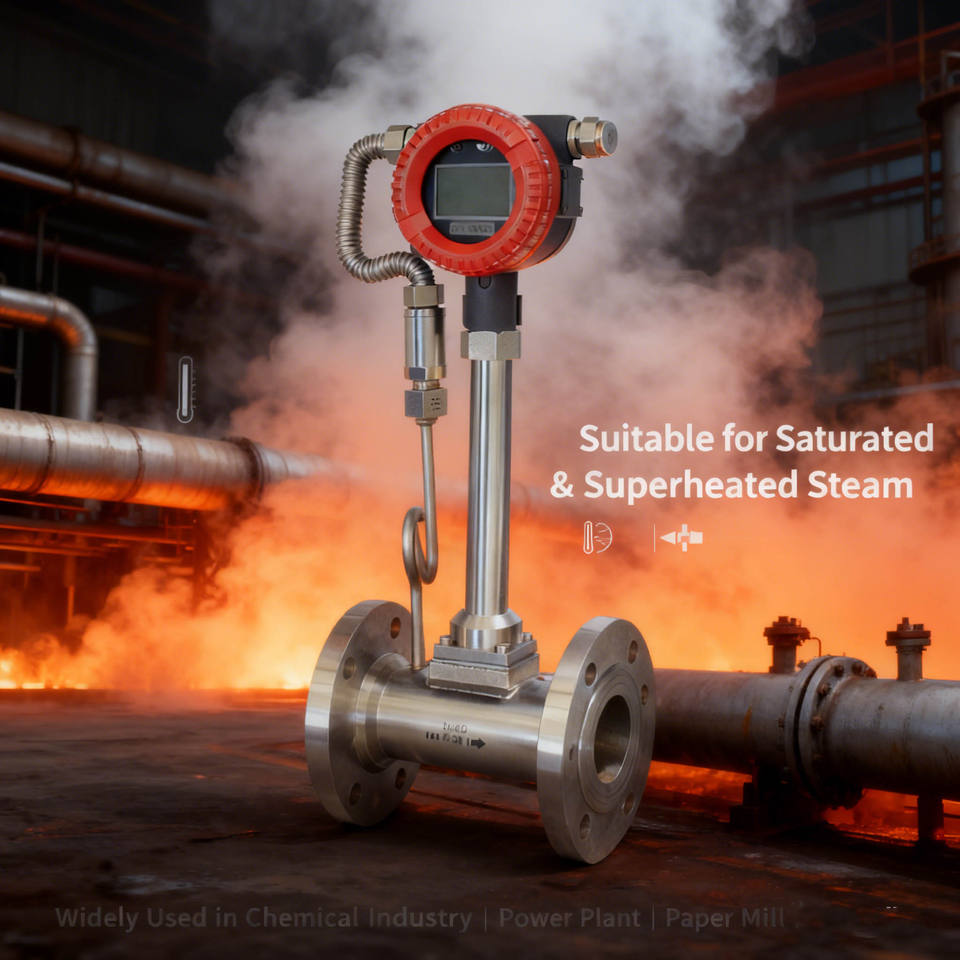 เครื่องวัดการไหลของไอน้ำแบบวอร์เท็กซ์เชดดิ้งสำหรับไอน้ำร้อนเกินอุณหภูมิปกติในโรงไฟฟ้าอุตสาหกรรมเคมี