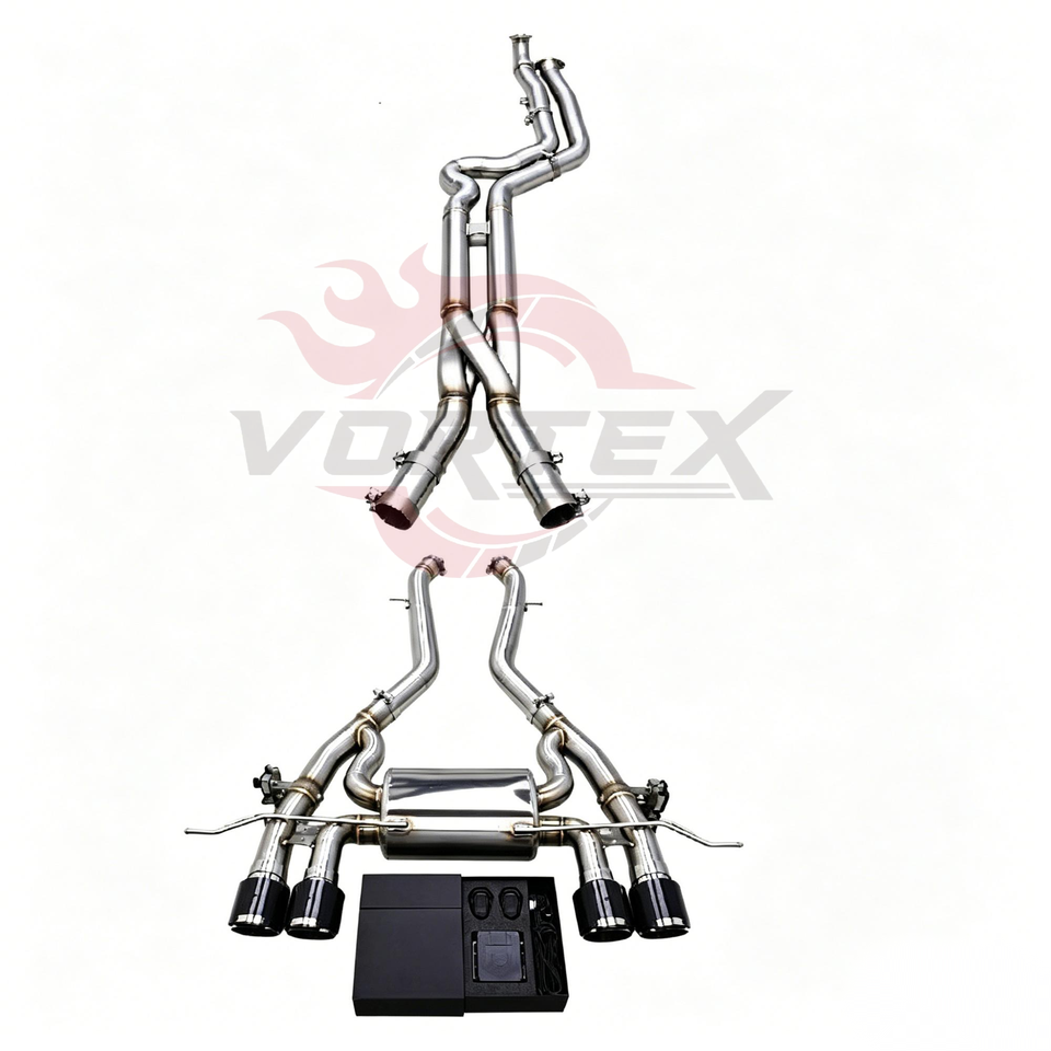ท่อไอเสีย Vortex Valvetronic สำหรับ M3 G80/M4 G82/M2 G87 S58 3.0T ปี 2021-2024 SS304 ขนาด 76 มม. ขัดเงาแบบกระจก ท่อแคทแบคสมรรถนะสูง