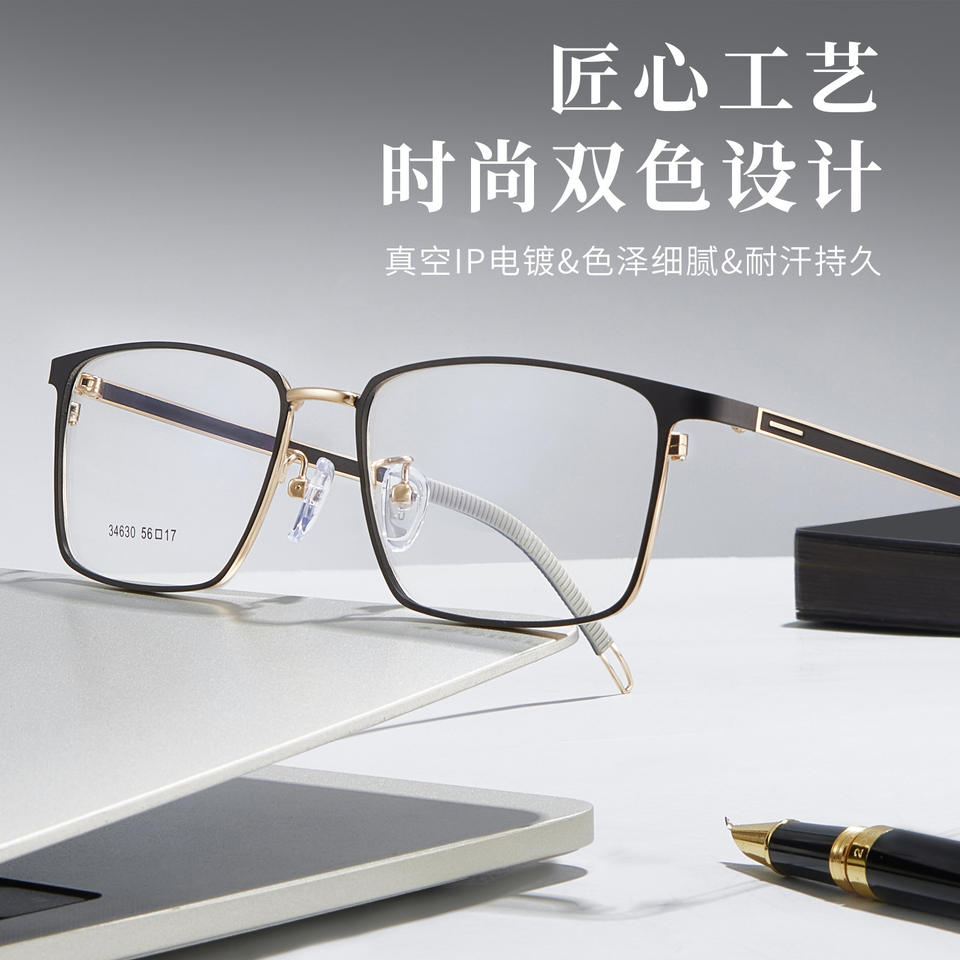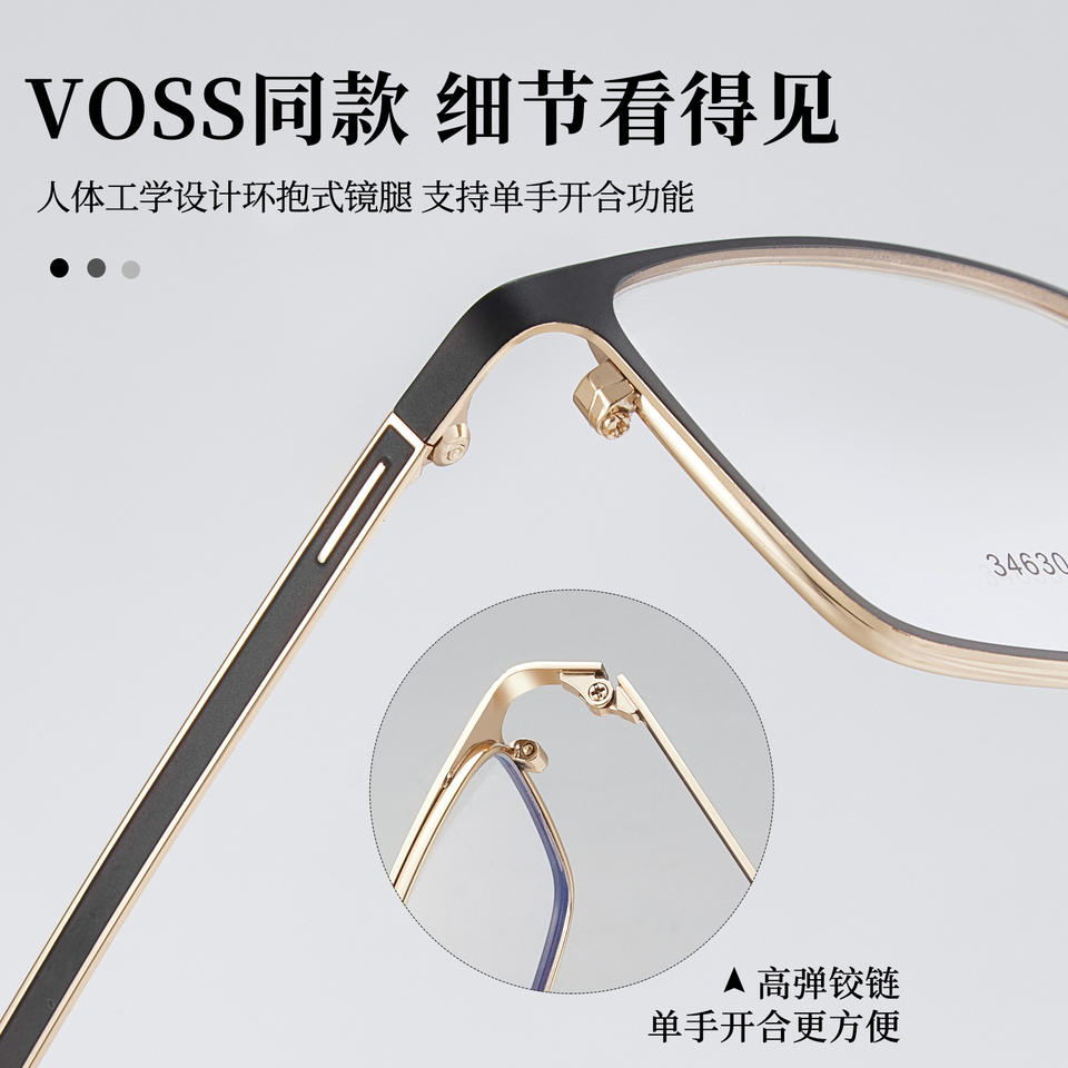 วอส สไตล์กรอบแว่นตาโลหะผสมสำหรับผู้ชายทรงสี่เหลี่ยมกรอบเต็มป้องกันการลื่น 34630 ผู้ใหญ่ ทุกเพศ