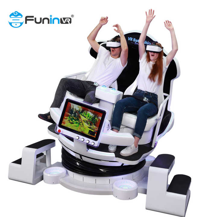 เครื่องจำลองการบิน VR 360 องศา เครื่องเล่นรถไฟเหาะ VR 2 ที่นั่ง เก้าอี้ VR โรงภาพยนตร์ 9D เก้าอี้ไข่ เกมคอนโซลหยอดเหรียญ สวนสนุก