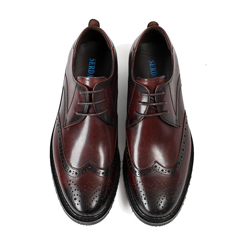 รองเท้าหนังวัวแท้แบบสวม ปลายแหลม แต่งลายโบรก พื้นกันลื่น ด้านในนุ่มสบาย รองเท้าผู้ชายแบบเป็นทางการ