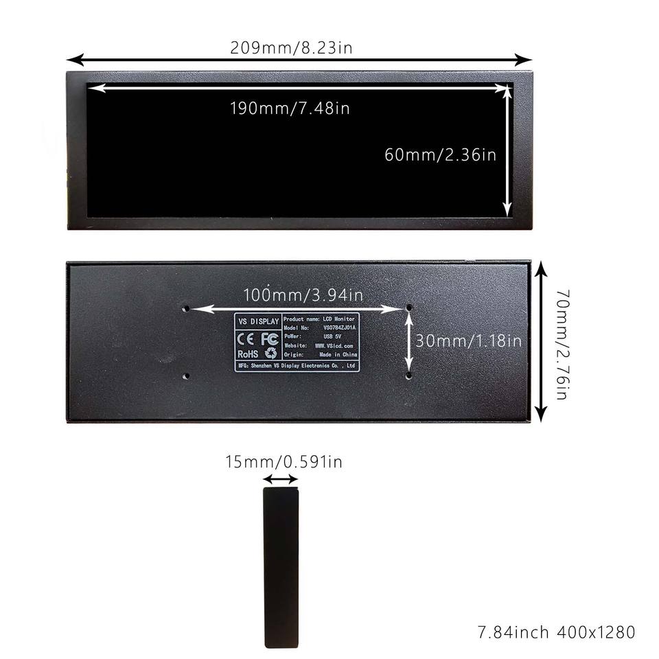 จอมอนิเตอร์ภายนอก vsdisplay หน้าจอขนาด7.84นิ้ว400x1280จอภาพขนาดเล็กสำหรับ PC CPU GPU TEMP Data Show
