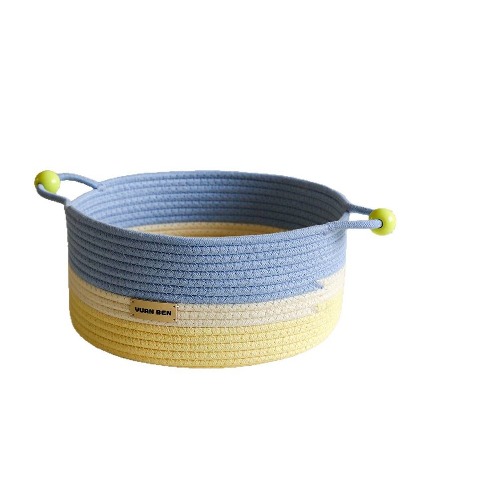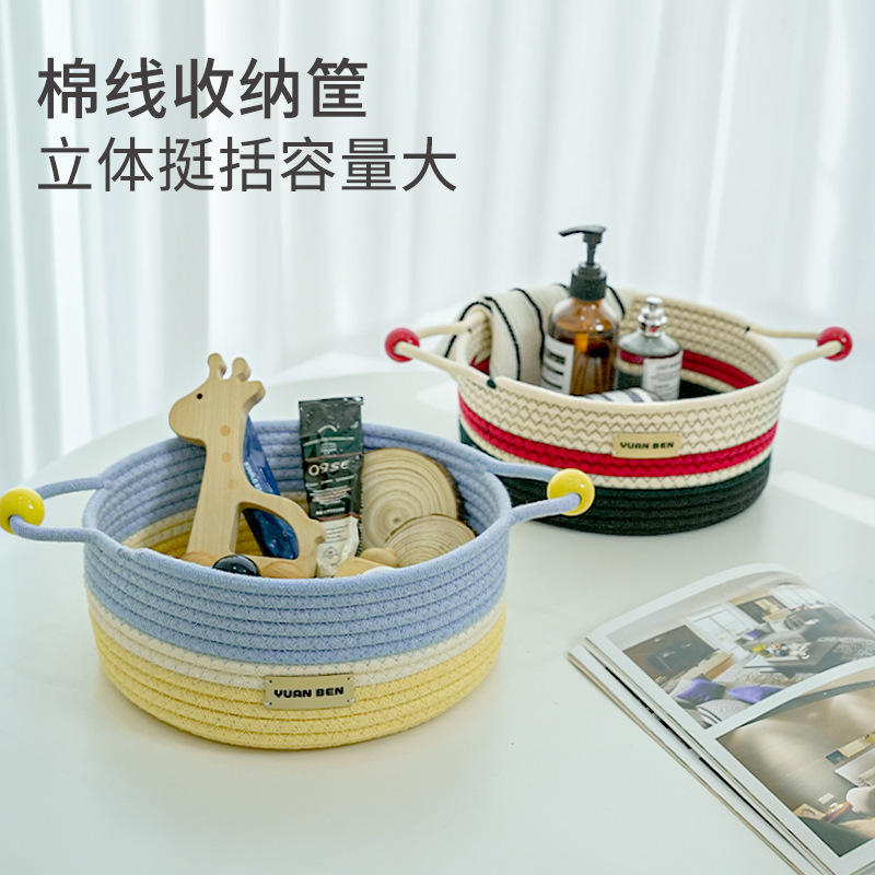 ตะกร้าเก็บของผ้าฝ้ายวูนเบน ทรงกลม ขนาดใหญ่ ทำด้วยมือ สำหรับจัดเก็บของเล่น ตะกร้าเก็บของบนโต๊ะ ทำจากผ้าฝ้าย 100%