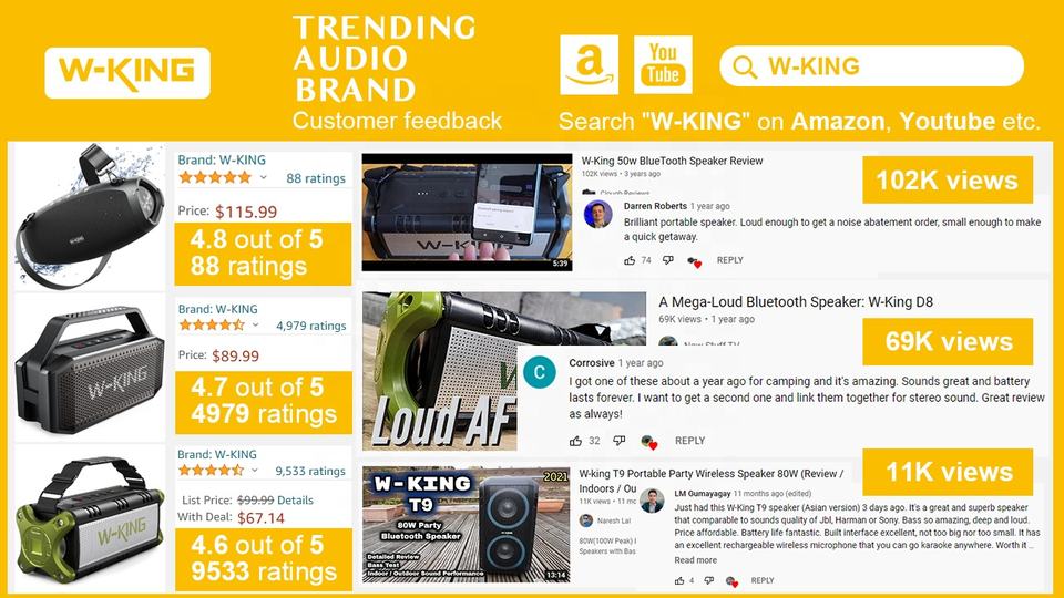 W-KING T9 Pro Portable TWS Stereo Wireless Altavoz Bluetooth Speaker with RGB Lights, for Party, Support Guitar Input