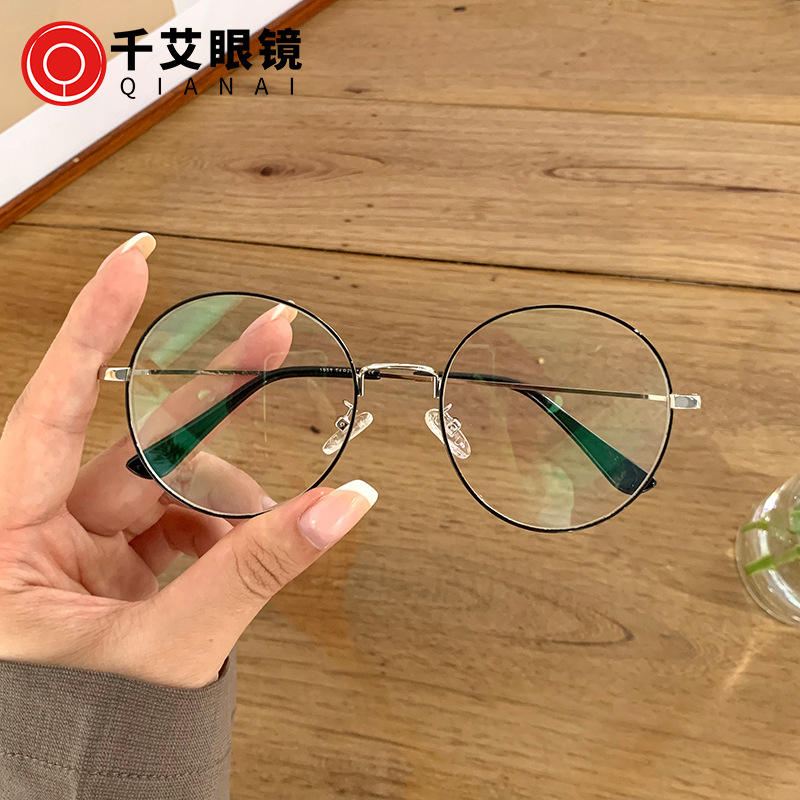 W1-1959 กรอบแว่นตาทรงกลมสำหรับผู้หญิงกรอบเต็มป้องกันรังสียูวี เอซีเลนส์แว่นตาธรรมดาสำหรับนักเรียนดีไซน์ทันสมัยแหล่งกำเนิดไถโจว